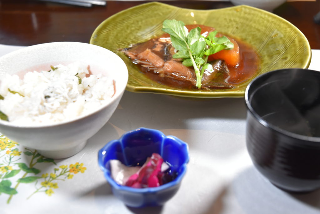 梅しらすごはん、お吸い物、香の物