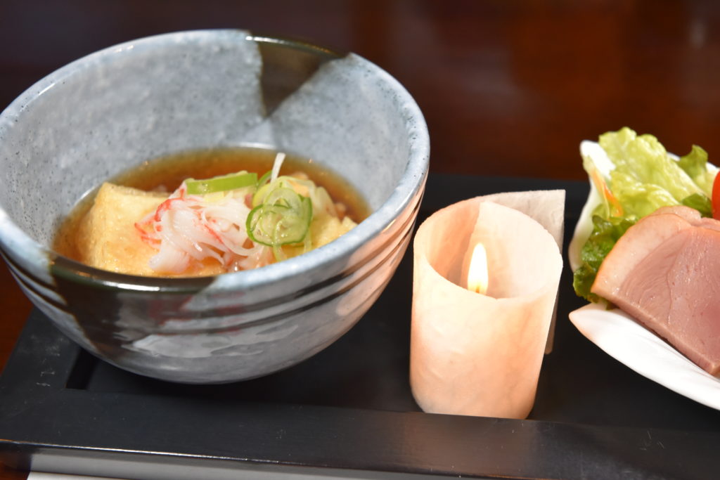 揚げ出し豆腐、鴨ローストのサラダ